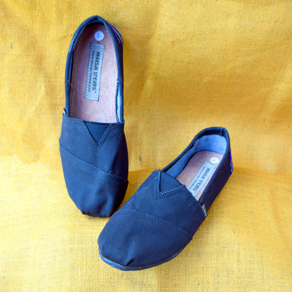 Hatua in swahili means taking a step.These unisex pair of shoes with maasai shuka are here to help you take each and every step in life cofidently and comfortably. Sole: Recycled Tyre. Upper: Black Stiff canva i.e plain-woven fabric typically made out of cotton and, to a lesser extent, linen. SIzes: 3-14UK